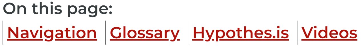 Most pages contain an “On this page” list of links to specific parts of the page, such as:
